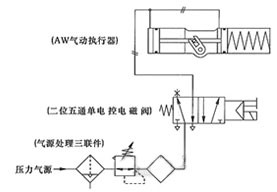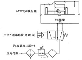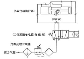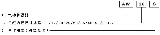 基本设计:气动双气缸双活塞拔叉式传动机构;型号AWxx=双作用式;型号AWxxS=单作用式(弹簧复位)。 |